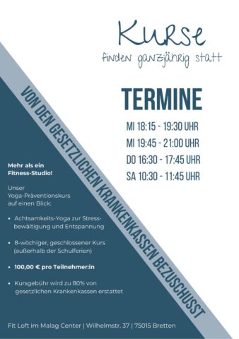Wir bieten in unserem Studio den Präventionskurs „Achtsamkeits-Yoga“ an –
